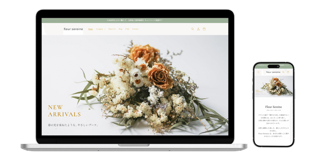 Shopify のテーマ Dawnで制作した架空のドライフラワーショップのECサイト